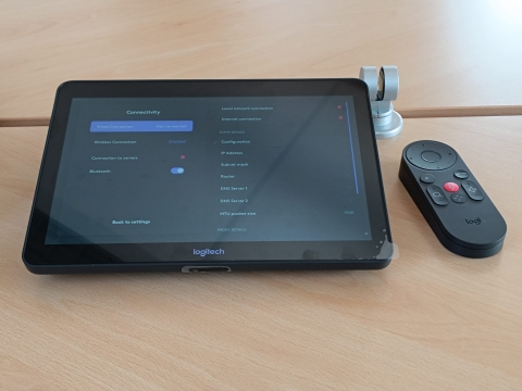 La Logitech Tap est un contrôleur tactile pensé pour la visioconférence autonome, certifié pour Microsoft Teams Rooms, Zoom Rooms et Google Meet.